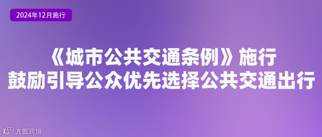 《城市公共交通条例》自2024年12月1日起施行。城市公共交通,是指在城市人民政府确定的区域内,利用公共汽电车、城市轨道交通车辆等公共交通工具和有关系统、设施,按照核定的线路、站点、时间、票价等运营,为公众提供基本出行服务。国家鼓励、引导公众优先选择公共交通作为机动化出行方式。国家鼓励和支持新技术、新能源、新装备在城市公共交通系统中的推广应用,提高城市公共交通信息化、智能化水平,推动城市公共交通绿色低碳转型,提升运营效率和管理水平。此外,城市公共交通企业不得将其运营的城市公共交通线路转让、出租或者变相转让、出租给他人运营;不得擅自变更运营线路、停靠站点、运营时间或者中断运营服务等。