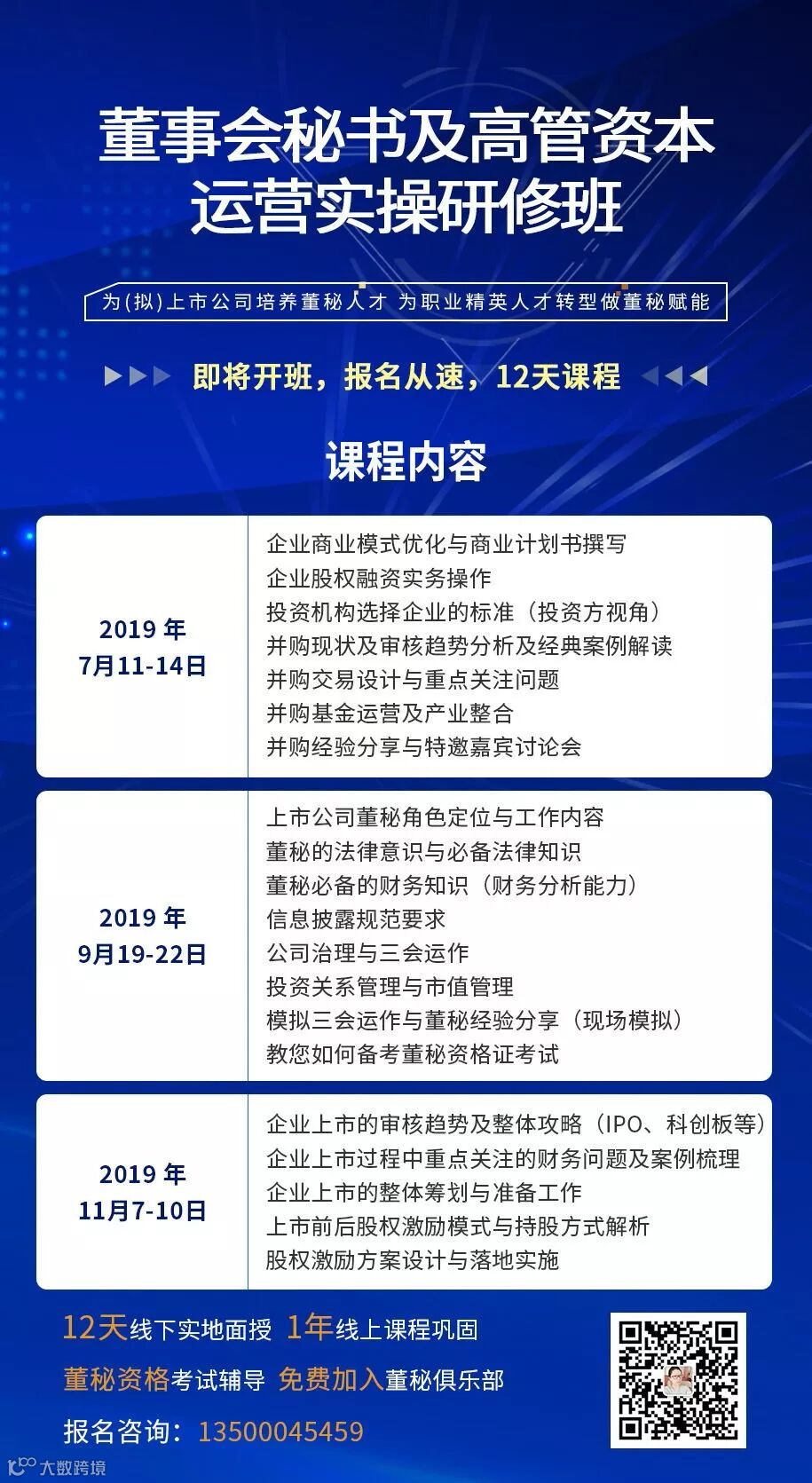 董秘俱乐部紧紧围绕如何推动企业更好的利用资本市场这一核心主题,以互助成长和价值共享为理念,以投行大咖,资深会计师、律师,优秀投资人,上市公司金牌董秘、财务总监、董事长等导师团为依托,通过知识研习、深度访学、讲座交流和资源对接等线上线下形式,助力俱乐部会员快速成长,资源共享,打造成为中国卓越的资本精英俱乐部。