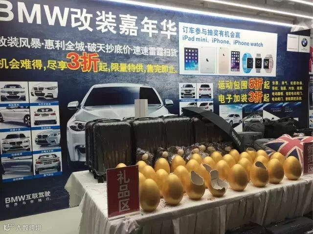 现场购改装精品及延保项目,均有机会抽取苹果IPad,BMW拉杆箱,背包,汽车拯救电源等豪华礼包。