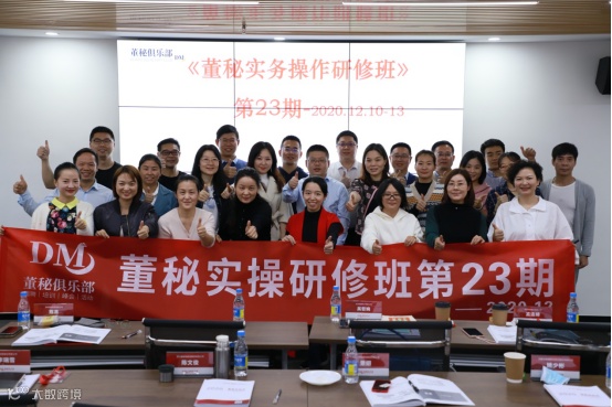 导读:2020年12月10日-13日,《董事会秘书实务操作研修班》第23期第二模块如期举行。本次课程吸引到了来自全国各地30多位学员齐聚深圳参加学习