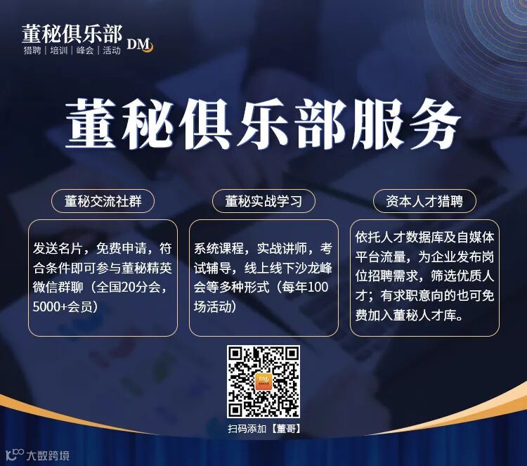 更多内容请关注公众号【董秘俱乐部】或添加董哥微信:Hiyouibhy