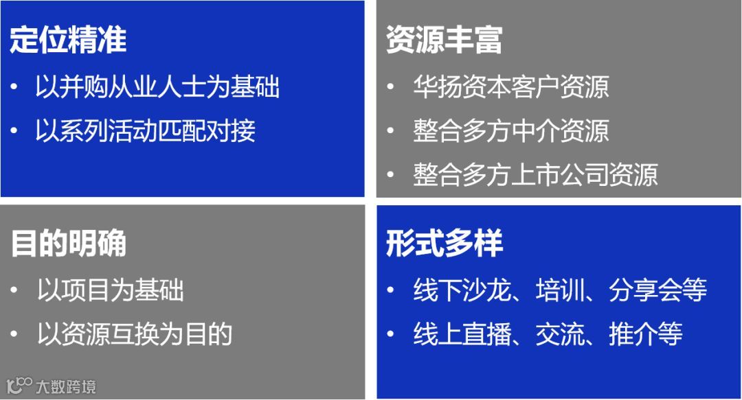 华扬并购产业联盟是由华扬资本发起,通过组织一系列的主题活动、沙龙、峰会,为投资并购圈行业人士打造的高效行业信息、项目及资源共享平台。