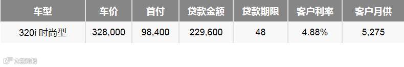 以BMW 3系2015超悦版 320i 时尚型设计套装贷款48个月举例,客户利率低至4.88%,月供仅为5275元。轻松拥有,无忧还款,BMW 与你的梦想一起同行。