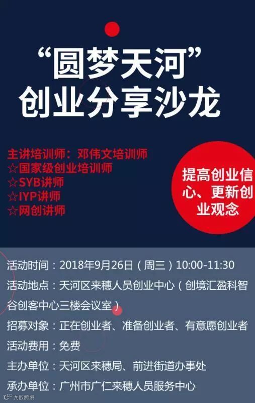 地址:天河区来穗人员创业中心(广州市天河区东圃二马路67号创境汇盈科智谷创客中心三楼会议室)