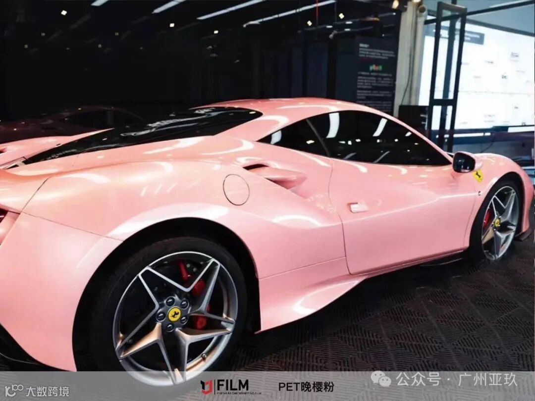 在光线下,粉色的车身随着光线的折射与反射,呈现出不同的光影效果,时而如同轻纱般飘逸,时而又如同绒毛般柔软,仿佛在诉说着一种不张扬却又无法忽视的甜美。