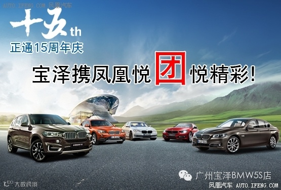 嫌车展买车太拥挤?嫌车展现场太吵?嫌车展车价格不够优惠?在十一国庆车展来临之前,广州宝泽BMW 5S店于9月20日携手凤凰汽车举办十一提前大放价,提前引爆广州十一车展钜惠,让您省去所有的购车烦恼。
