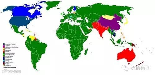 这幅地图显示了世界各国最流行的体育运动。