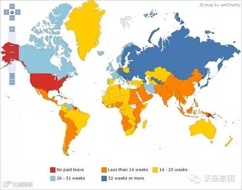 这幅地图揭示了世界各国女性所能享受的带薪产假天数。