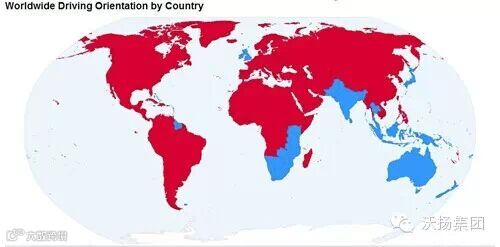 蓝色代表开车靠左行的国家
