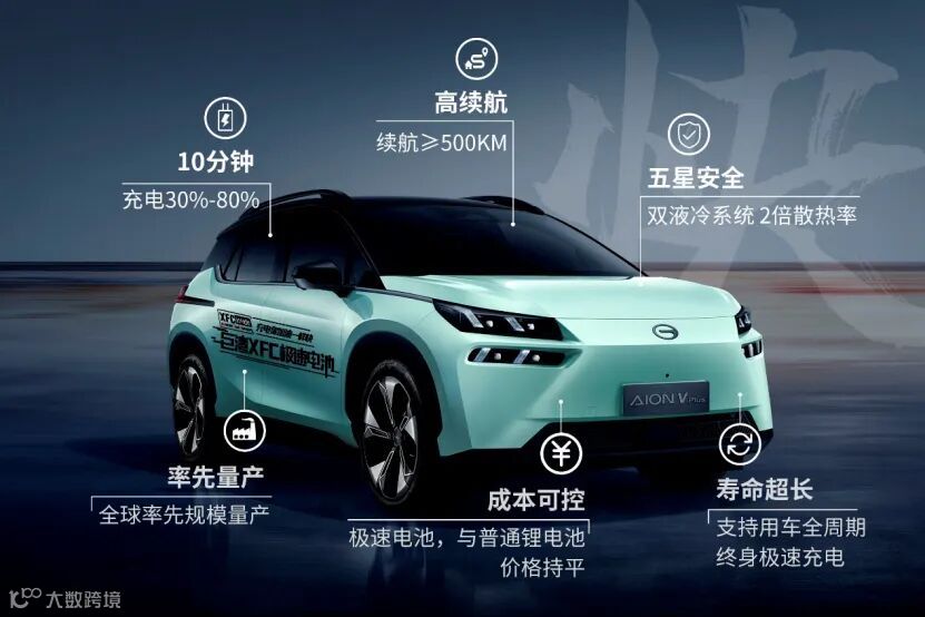 巨湾技研XFC极速电池:充电像加油一样快 新能源汽车充电慢、充电难一直是用户的核心痛点。巨湾技研XFC(eXtreme Fast Charging)极速电池产品分为3C倍率、6C倍率两类,室温下可在15分钟、8分钟内完成 0%-80% SOC(电池荷电状态)充电,打造“充电像加油一样快”的服务体验。巨湾技研的6C倍率XFC极速电池搭载在广汽埃安车型上创造了“最快电动汽车充电技术”的世界纪录,并提前超越了美国2023年的近期目标或其所定义的XFC目标。2021年9月,配置巨湾技研3C倍率XFC极速电池的广汽AION V Plus车型已面向市场销售。配置巨湾6C倍率XFC极速电池的同品牌车型已于2021年9月30日获得国家公告,有望今年内上市。