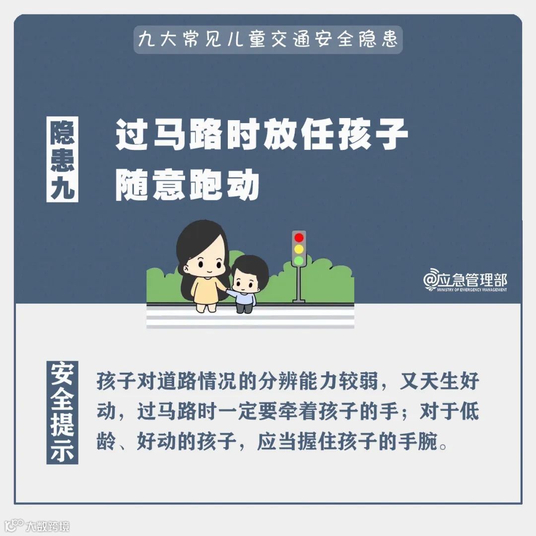以下九大常见儿童交通安全隐患