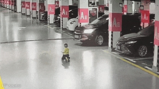 看见孩子在车旁奔跑时