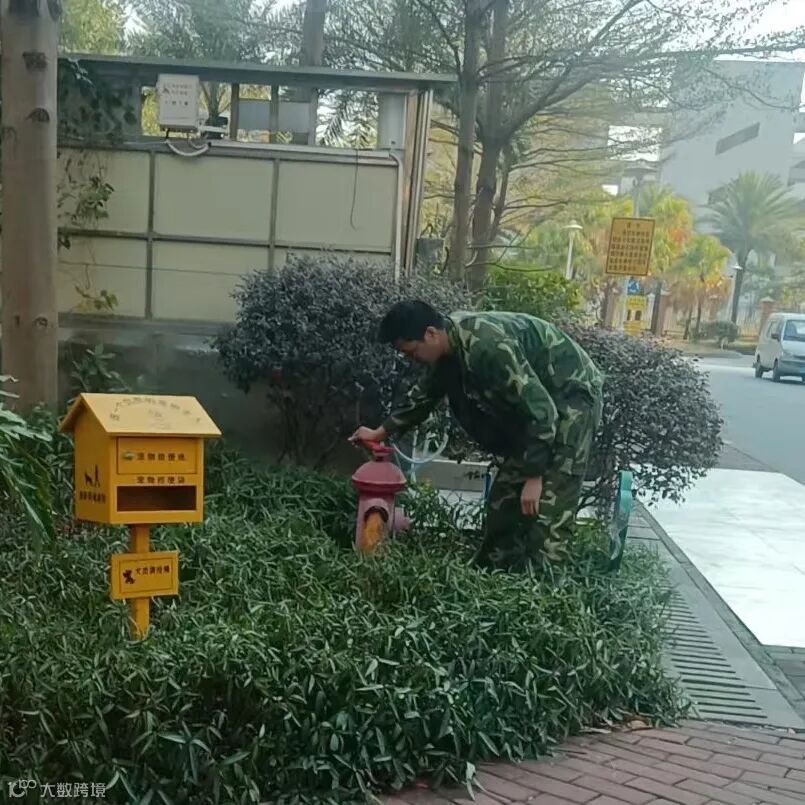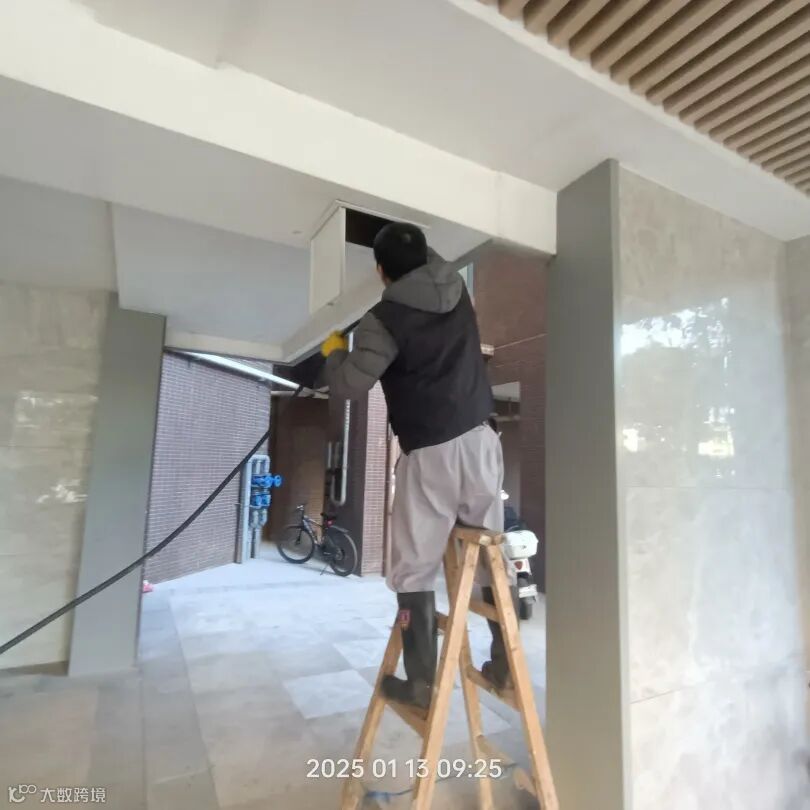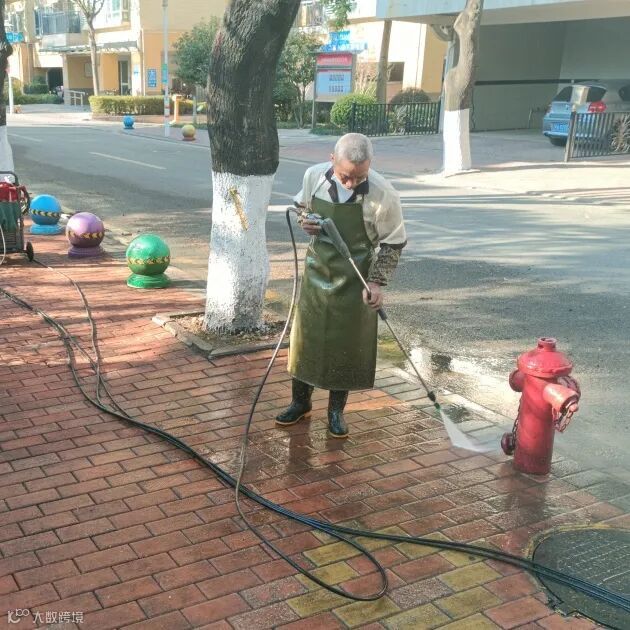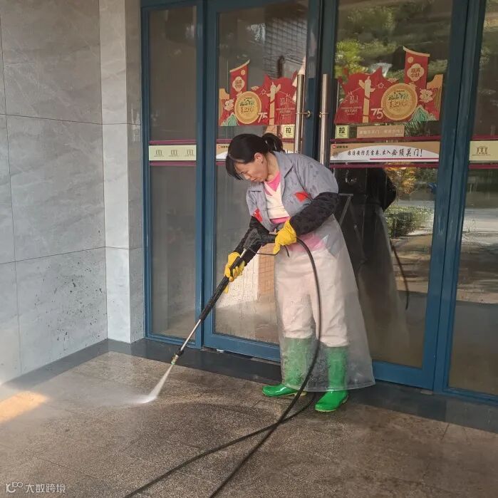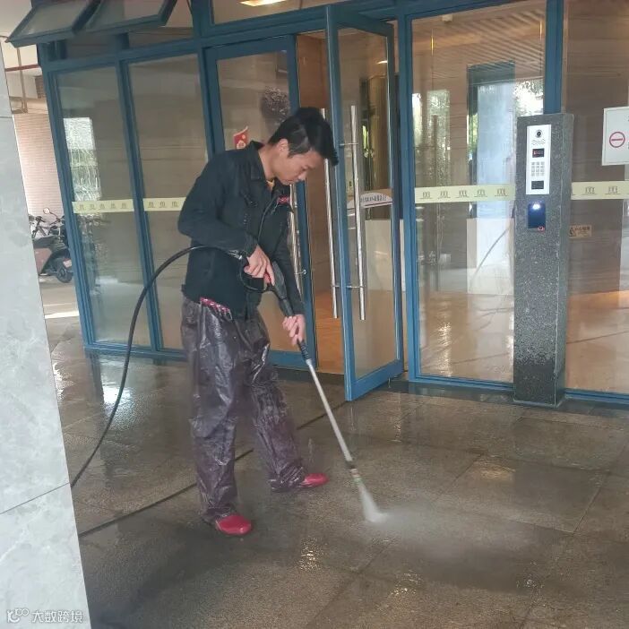 高压水枪冲洗大堂门前