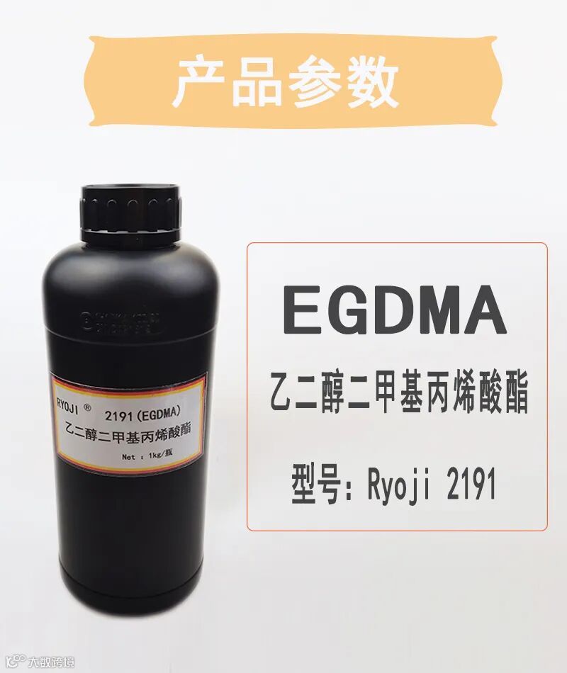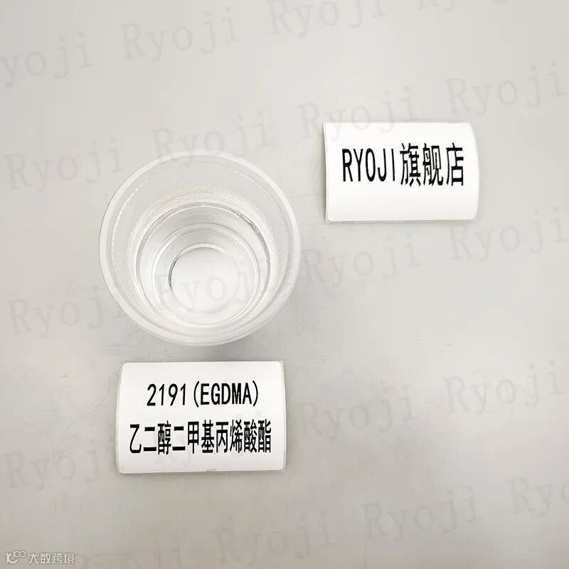 Ryoji良制2191- EGDMA是一种适用于光固化反应的甲基丙烯酸酯类单体,可用于UV涂料、UV油墨、UV胶粘剂等各种不饱和体系的UV聚合反应,也可以用于人造大理石、牙科材料、乳液共聚物、造纸、橡胶过氧硬化改性剂、粘合剂、油墨、光学聚合物的交联剂。