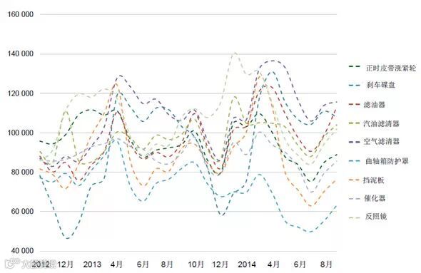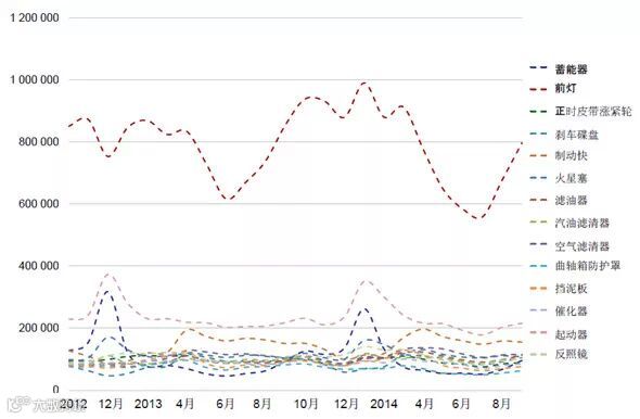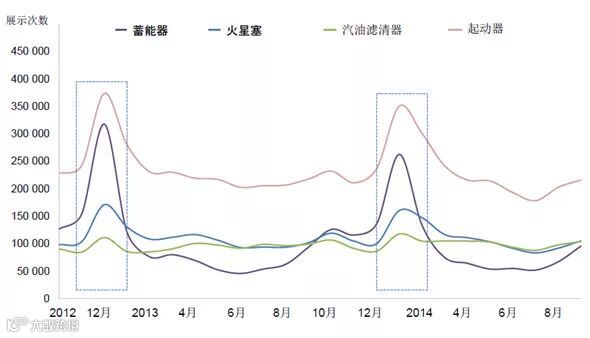 冬季时用户对蓄能器,火星塞,起动器与汽油滤清器的需求最高。