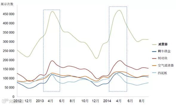 冬天过以后,要进行汽车维修,所以用户对减震器,刹车碟盘,制动块,空气过滤器及挡泥板的需求增加。