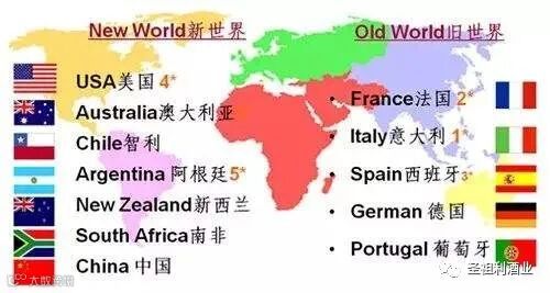 旧世界葡萄酒的国家主要集中在欧洲,少量分布于中东地区。其主要代表国家有法国、意大利、葡萄牙、西班牙、奥地利、德国等。