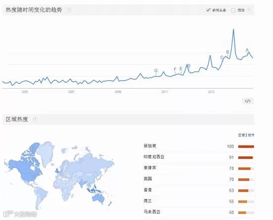 首先我们来一起看下消费电子第一产品线电子烟,Google趋势表明Electronic Cigarette自2009年就开始逐步提升,在2912年年底热度有所下滑,但并不影响其后续回缓。此类产品备受法国、美国、英国客户的欢迎,因此搜索热度也是较高。电子烟是由我国自行研发的一款产品,其无公害不要伤身体的优势打破了传统香烟的电子商务进出口的警戒线。