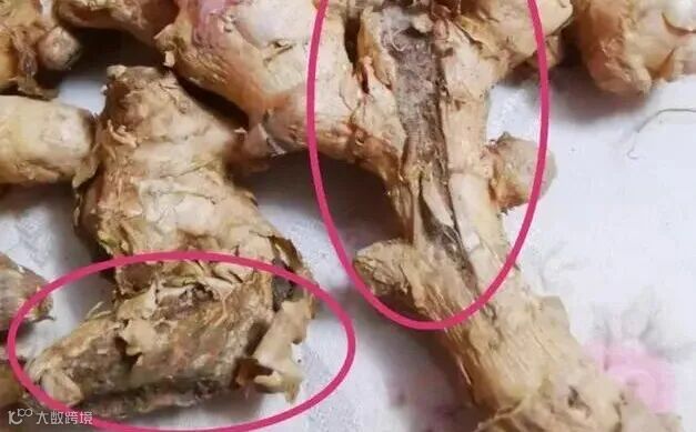 已经腐烂或切开颜色变褐的生姜,会产生毒性有机物黄樟素,能使肝细胞变性,务必丢弃。