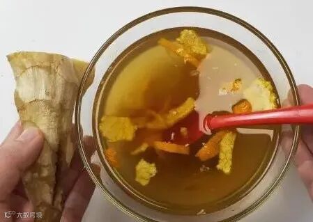 做法:生姜9克、鲜橘皮9克洗净,加水500毫升煎煮,一天分两次服用。