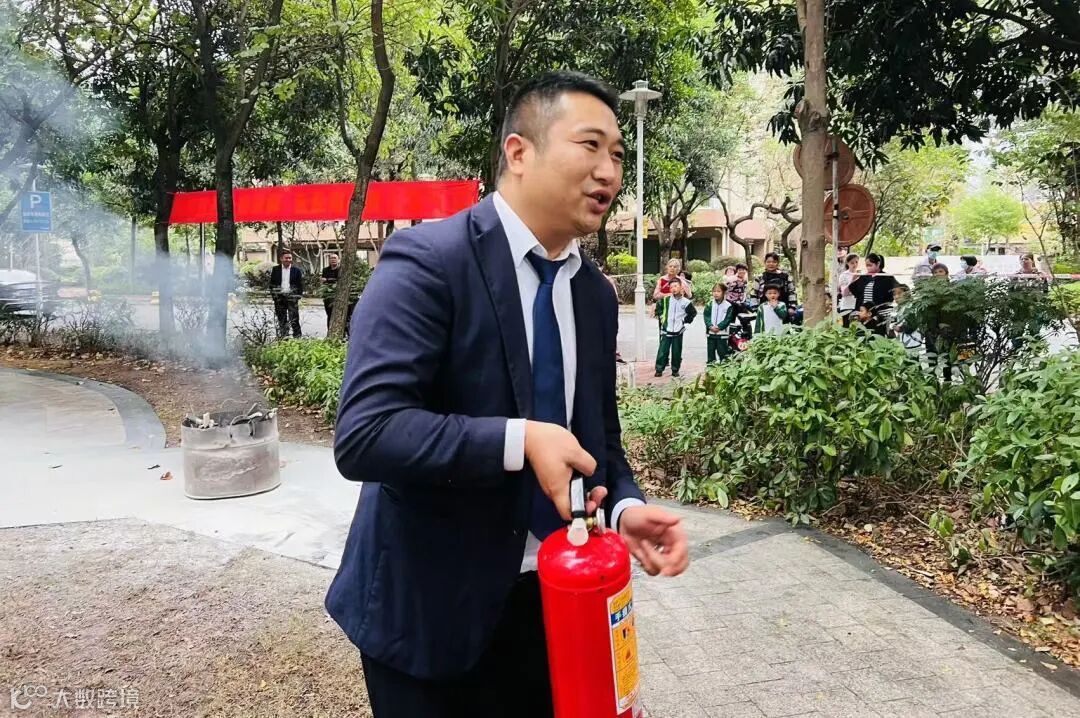 同时,为提高全员及业户的灭火器实操能力,加强“四个能力”和“四懂四会” 知识的实践 ,秩序维护部部黄明亮经理为全员及现场小区业户详细地讲解了灭火器的使用方法。如何正确地拔掉保险销,如何瞄准火源,以及如何进行有效的喷射。他还强调了在火灾发生时,保持冷静、迅速并正确地使用灭火器的重要性并让大家体验实操。