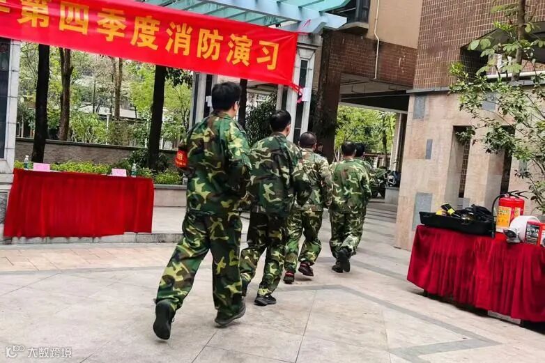 随着急促的警报声响起,消防演习拉开序幕……