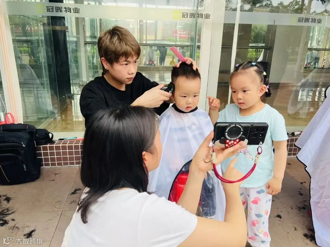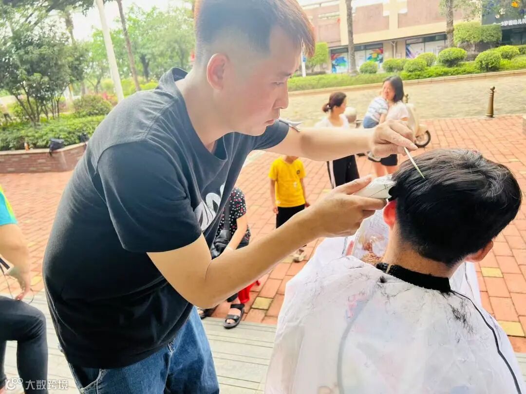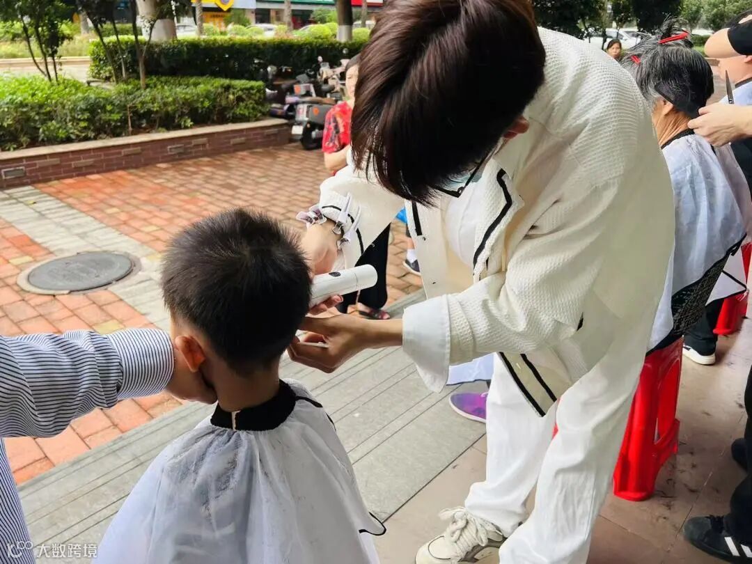壹点美的专业理发师们一早就到达现场,迅速投入到忙碌而又充满意义的工作中。他们手中的剪刀与梳子上下翻飞,每一个动作都娴熟而专注。面对不同需求的业户,理发师们耐心倾听,根据每个人的脸型、发质和喜好,给出专业的建议,精心设计出最适合的发型。在剪发过程中,还不时与业主家人们交流互动,询问他们对发型的满意度,现场充满了温馨与欢乐。
