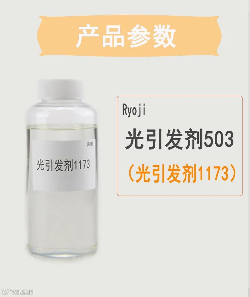 Ryoji良制光引发剂503(光引发剂1173) 一种不易黄变的紫外光引发剂,用于引发不饱和预聚体系的UV聚合反应。具有低气味、非黄变、色彩稳定性好等特点。能很方便地与其他光引发剂进行复配。