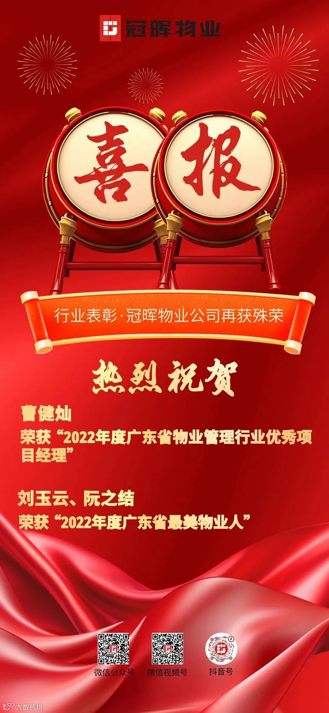 在此次的评选中,广州市冠晖物业管理有限公司多人荣获表彰,凭借持续为客户提供贴心物业服务,曹健灿荣获“2022年度广东省物业管理行业优秀项目经理” 称号。凭借踏实肯干的工作态度、求真务实的工作作风,阮之结、刘玉云荣获“2022年度广东省物业管理行业最美物业人”称号。