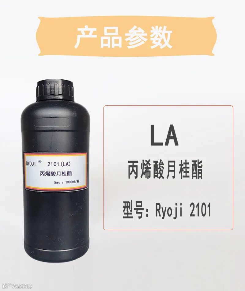 Ryoji良制LA是一种适用于光固化反应的丙烯酸酯类单体,可用于UV涂料、UV油墨、UV胶粘剂等各种不饱和体系的UV聚合反应。