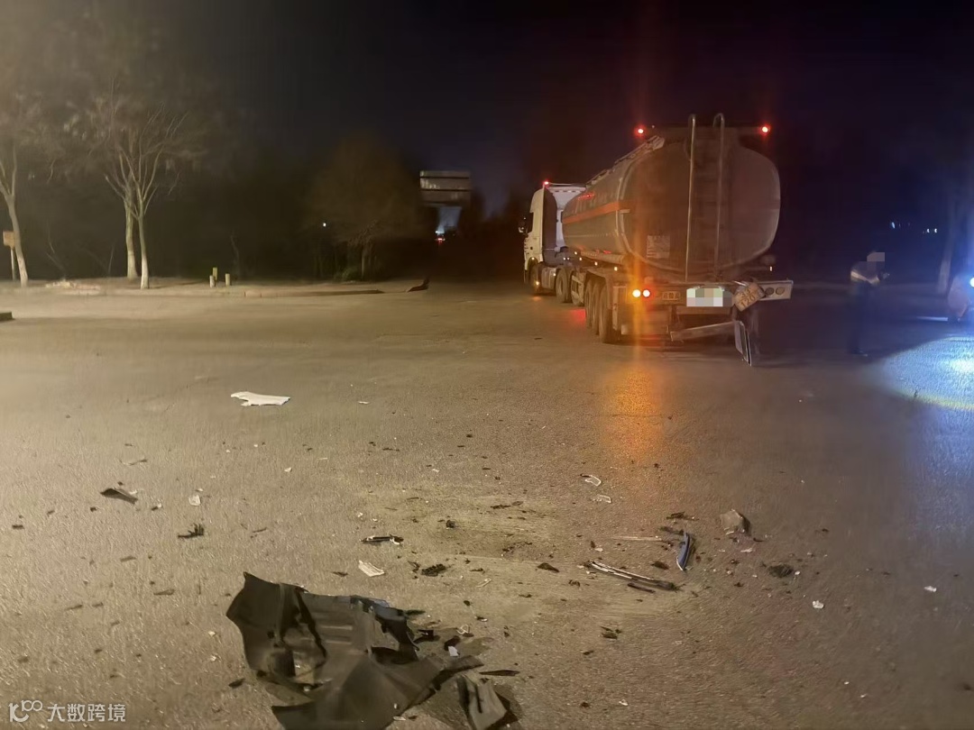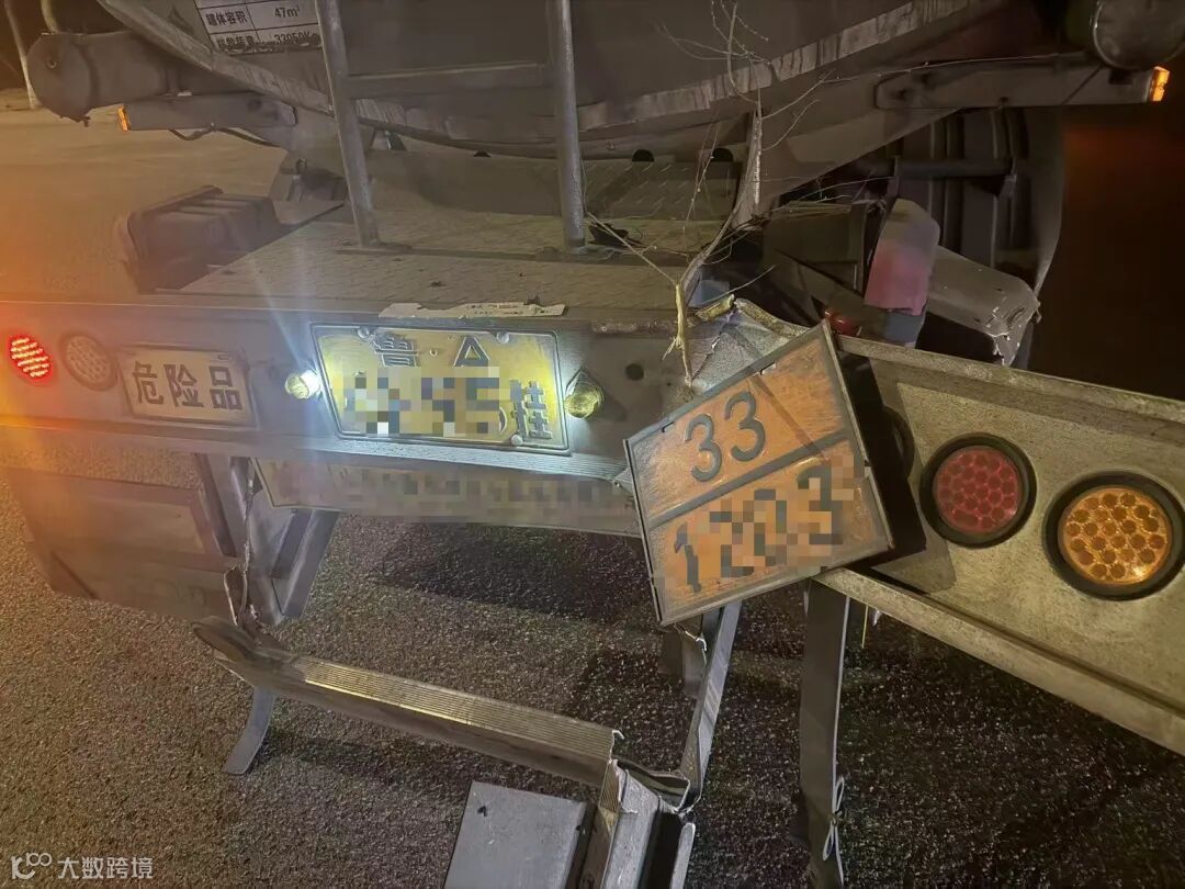 山东一危化品运输车被撞受损肇事车辆逃逸