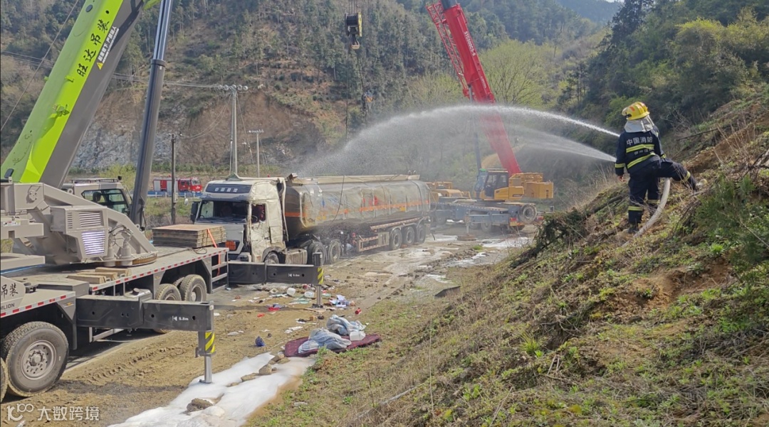 事件:3月26日上午,信阳市新县106国道一辆载有33吨汽油的槽罐车急转弯时发生侧翻。