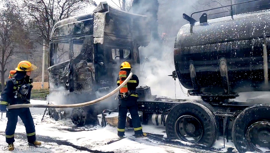 据了解,接警后,济源消防救援支队立即调派救援人员赶赴现场扑救,侦查发现,该槽罐车驾驶室起火燃烧火势较大已经蔓延至罐体,报警人介绍槽罐车共装载了48吨浓硫酸,经过三十多分钟的紧张处置,成功将大火扑灭。小编提醒:出行前一定要对车辆做个全面检查,行驶过程中更是要时刻注意车辆和货物的安全状况,个人无法处置的,要将车辆停靠在尽可能空旷、远离人群、水源的地方,及时报警,便于相关部门第一时间有效处置,切莫大意~