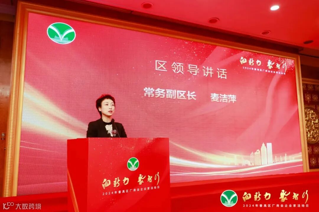 受区委书记黄彪的委托,区委常委、常务副区长麦洁萍致辞。她首先代表区委、区政府,向广大企业家致以诚挚的问候,向一直以来关心支持番禺发展的社会各界表示衷心的感谢。她说,去年以来,面对复杂严峻的外部发展环境,番禺企业沉着应对、化危为机、勇闯难关,为全区经济社会高质量发展作出了重要贡献。