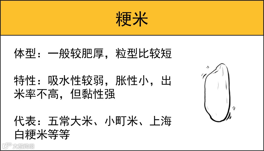 我们日常吃的主要是粳米和籼米,为了让大家了解得更直观,米妹做了一个表格👇