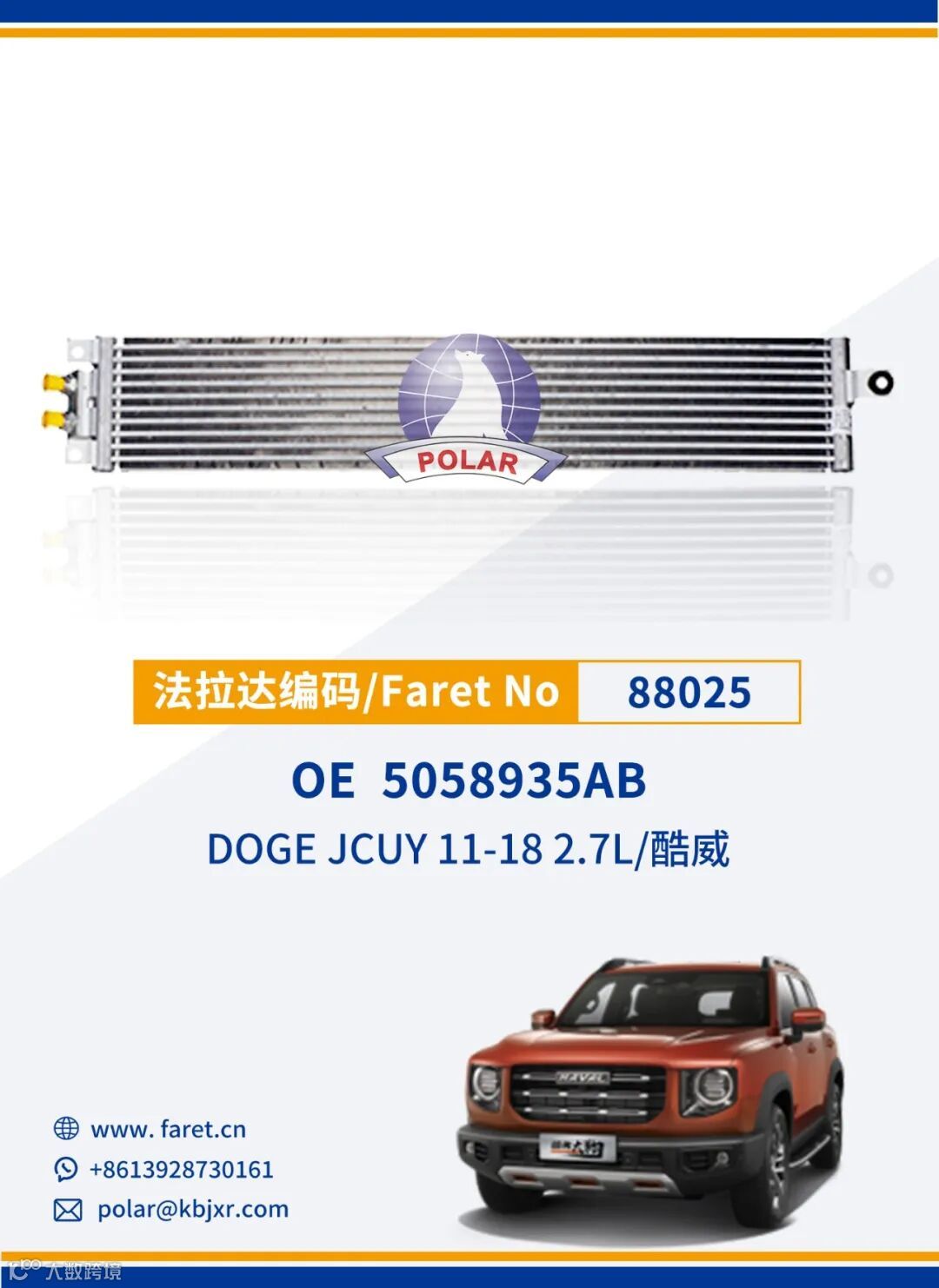 法拉达集团汽车高端冷凝器、散热器、中冷器、油冷器等汽车热管理系统新品上线,品类齐全和质优、价优、服务优,为您提供热管理系统一站式解决方案!
