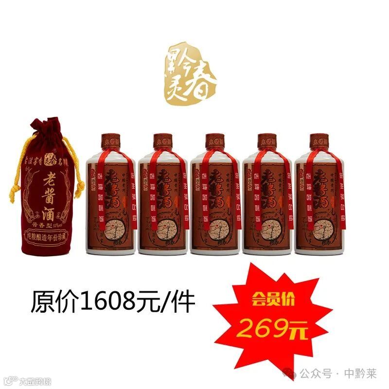 “花269,送269,奖269”,黔灵春布袋老酱,原价1608元,会员价低至269元,再送优惠券269元。