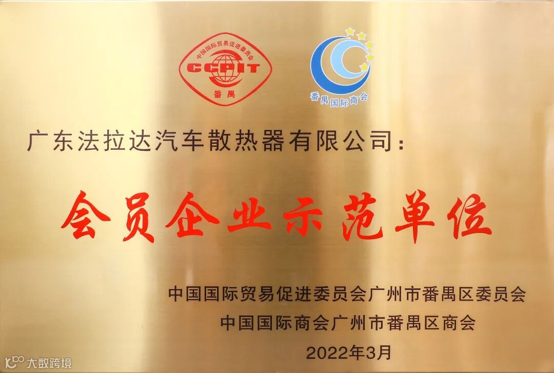法拉达荣获番禺区国际商会《会员企业示范单位》