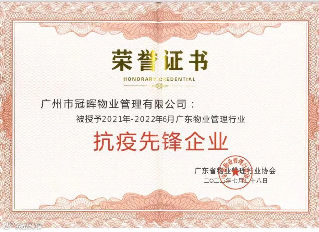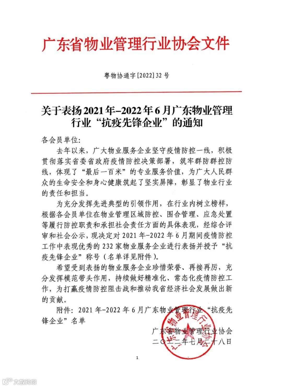 关于表扬2021年-2022年6月广东物业管理行业“抗疫先锋企业”的通知