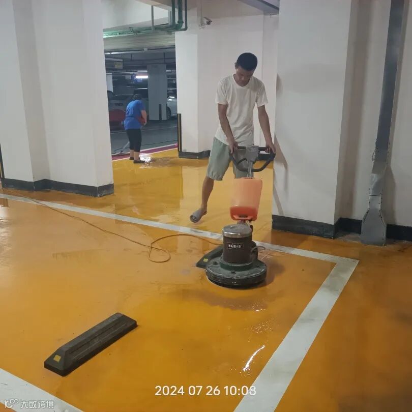 定期对大堂地砖及车库地坪漆抛光