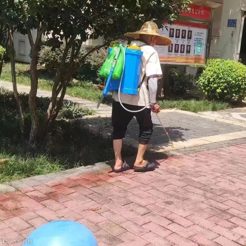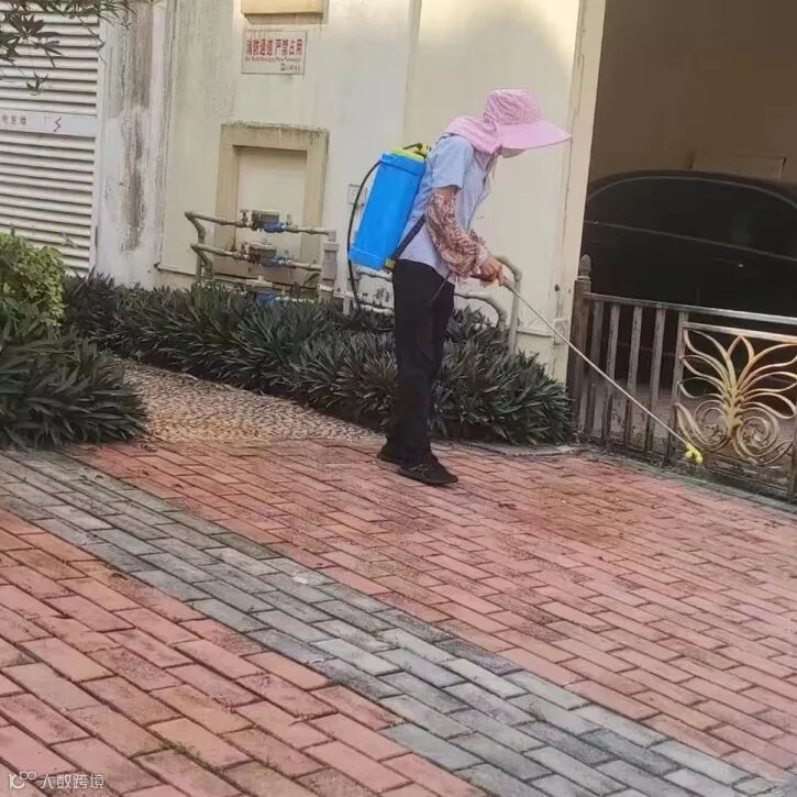 对园区人行道路喷药除草