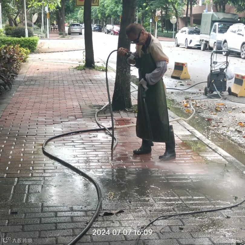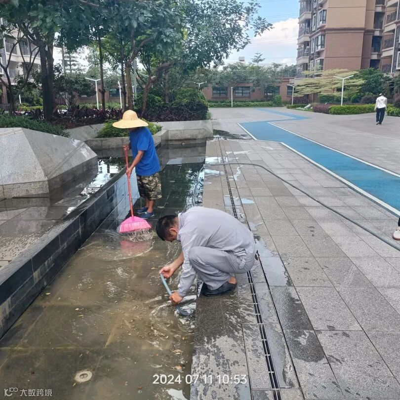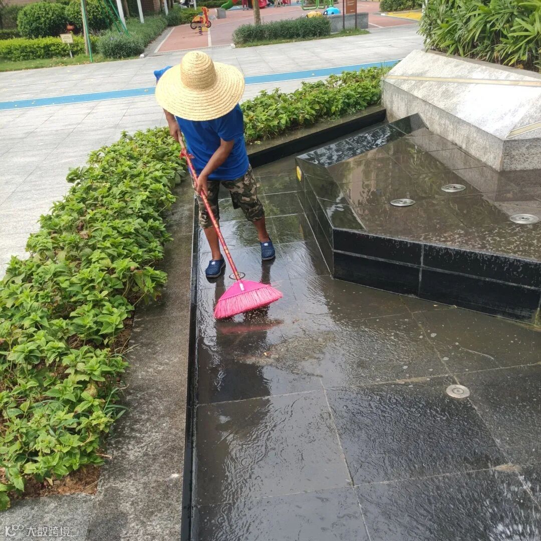 园区路面清理、单元楼卫生清洁、清洗水系