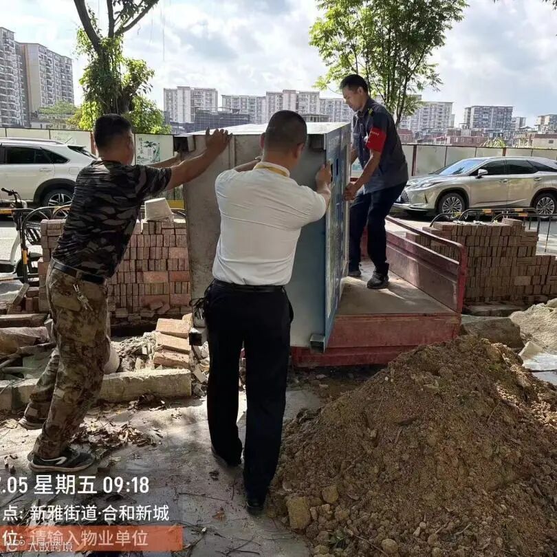 协助放置石墩及清理大件物品