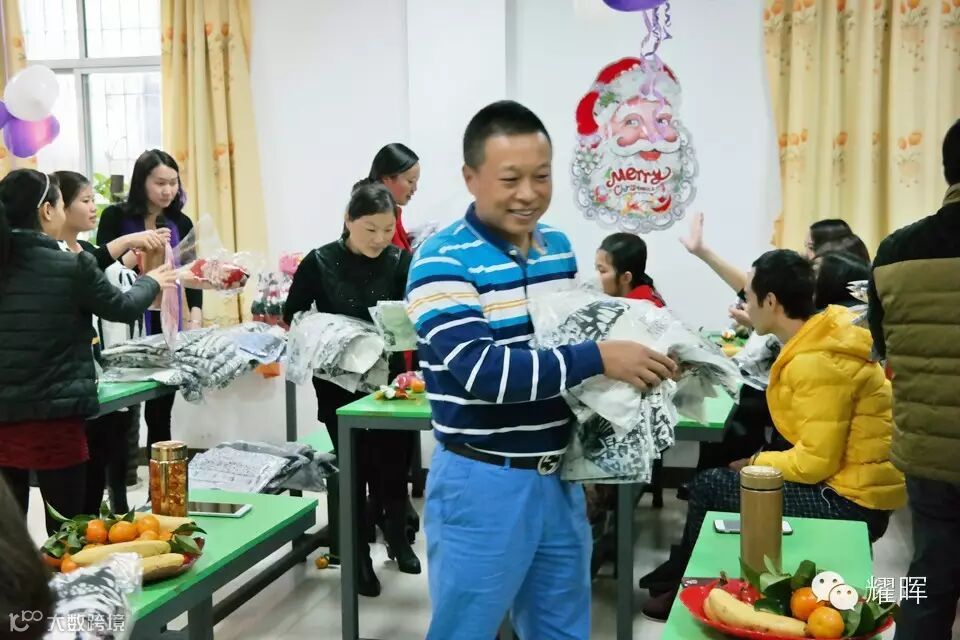 接下来就是发放圣诞礼物,公司领导安排给每个员工及家属都准备了礼物,看到大家接到事业部总经理董先生亲手派送的礼物,大家都喜笑颜开!耀晖的每一步发展,都离不开各位家人坚守岗位,默默付出!