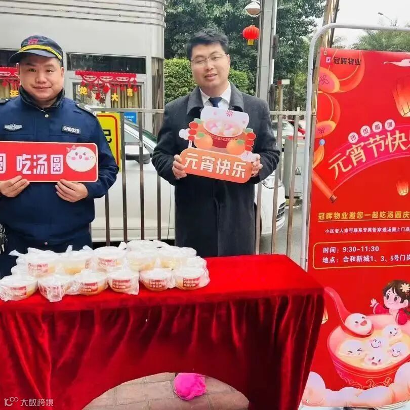 正月十五月儿圆,合家欢乐大团圆。为弘扬中华传统节日,丰富小区文化生活,住户服务中心特于2024年2月24日在合和新城小区举办“欢度元宵·喜送汤圆”活动,为各业户送上元宵祝福。也祝愿各位业户在新的一年里如汤圆般丝滑,生活如汤圆般甜蜜。