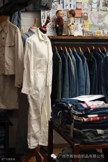 作为收集丹宁(DENIM)牛仔布料单品最全的“博物馆”,店铺负责人与我们谈起牛仔布料服装简直是滔滔不绝,从他小时候梦想成为一名牛仔到美国一度倡导年轻人的西部美国梦,再到文化输出的美国西部电影……作为一个地地道道的英国人,从小的梦想却是成为一个美国特产的牛仔,可见牛仔文化对世界的影响。然而丹宁布料是如何与西部牛仔建立连接的呢?说到这里,必须要提起一个在牛仔服装史上有重要地位的品牌Lee。
