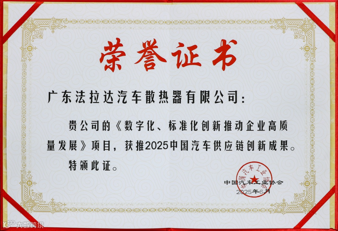 ●2025年11月25日,法拉达集团作为企业代表,参与了在安徽芜湖举办的“中国汽车供应链协同创新全国行”奇瑞站活动。本次活动以“链动产业生态 | 新质驱动未来”为主题,聚焦汽车供应链的协同创新与高质量发展,为整零企业搭建了交流对接平台。通过与奇瑞汽车等行业伙伴的深入交流,集团展示了在热管理领域的技术积累,并学习了行业前沿趋势与需求,为后续技术升级与合作拓展奠定了基础。