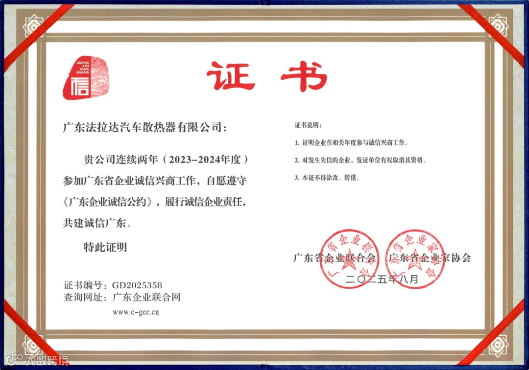● 2025年6月5日,法拉达集团董事长张建发先生做为中气协换热器分会理事长,率集团副总经理钟志鹏(分会副秘书长)参加了在广西举办的汽车换热器行业理事会议。会议期间,与行业同仁共同探讨产业发展,交流行业经验,受益匪浅。未来,集团将继续向优秀同行学习,积极参与行业活动,共同促进行业有序发展。