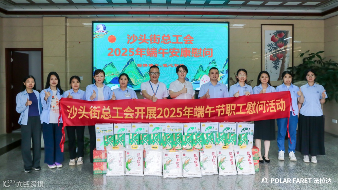 ● 粽叶飘香,情暖职工。2025年5月23日,沙头街总工会深入法拉达集团开展端午节慰问活动,为全体员工送上节日问候与关怀。