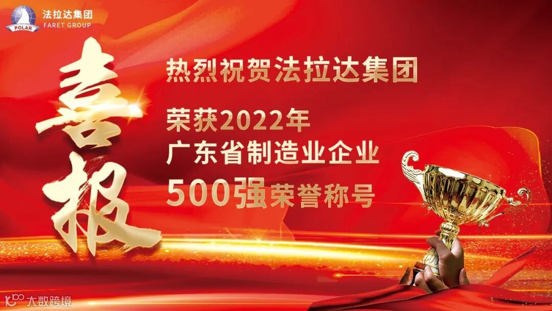 广东制造业500强企业是全省规模以上制造业的领头羊,带动着整个行业以及产业链的发展,是全省制造业、区域经济企稳及持续发展的主力军。此次进入广东省制造业企业前500强榜,是对法拉达集团综合实力的肯定,也证明了法拉达集团以全球领先的智能制造优势,不断拓宽国内外市场,以全品类、全方位、驱动公司业绩持续保持高增长,通过不断攻坚创新技术壁垒,为品牌发展注入鲜活动力,加快向“中国智造”迈进。